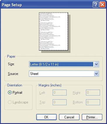 | 2. | Confirm that Paper Size is set to Letter (8½ x 11") or A4 if you're outside the United States), and that the Orientation is set to Landscape.