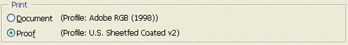 Tip  | Keep in mind that the proof may not be an exact match because of differences in the device gamuts, whiteness of the paper stock, and reproduction characteristics of each device. You can use ColorThink to compare the U.S. Web Coated (SWOP) v2 and Epson 2200 profiles to see how the color spaces of the two devices correspond. |