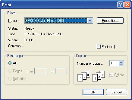 | 12. | Click OK to close the Properties dialog box and then click Print to start printing.