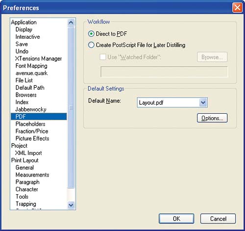 | 5. | Select Direct to PDF and click OK to close the Preferences dialog box.