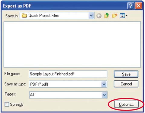 | 7. | In the Export as PDF dialog box that appears, click the Options button.