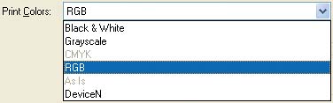 | 10. | From the Print Colors drop-down menu, choose the appropriate color space for your document. In the example, it's RGB.