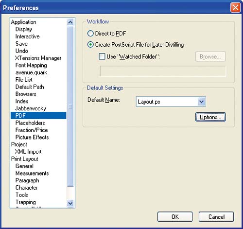 Figure 9.29.  Click the Create PostScript File for Later Distilling radio button and then click OK to close QuarkXPress's Preferences dialog box.