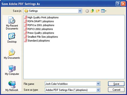 | 9. | Name your new Adobe PDF settings file and save it in the default location.