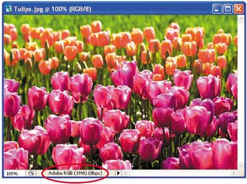 | 2. | Check the information area in the lower left of the image window. It should say Adobe RGB (1998).