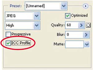 Selecting this option instructs Photoshop to embed the current working-space profile, sRGB in this case, in the image file.