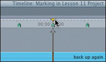 | | | 6. | Ctrl-click one of the visible markers in the back up again clip. From the shortcut menu, choose "belly down." The playhead goes to that marker.