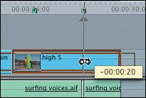 | 4. | Now click with the Slip tool directly above the marker in the high 5 clip, and drag left over the last sequence marker in the ruler area.
