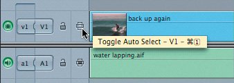 Note In the Viewer scrubber bar, the lack of dots indicates that this is a source clip and not a sequence clip. | 4. | Click the V1 Auto Select control to toggle the status of this track back to normal.