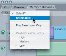 Note Remember, boldface effects can play in real time and do not need rendering. If these effects do not appear in boldface and a colored render bar appears in the Timeline after the effect has been applied, click the Real Time pop-up menu in the Timeline and choose Unlimited RT.  Another way to add a transition is from the shortcut menu that appears when you Ctrl-click an edit point.