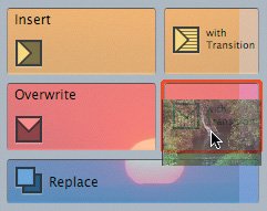 Tip If you want to apply this type of fade-in on a clip somewhere within the sequence, hold down the Command key as you drag the cross-dissolve icon to the edit point. You can also edit a new clip to the Timeline and add a transition at the same time. This is done by dragging a clip to one of the Edit Overlay sections in the Canvas.