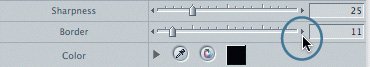 Note It doesn't matter whether you enter a number or move the slider. One always affects the other. | | | 6. | Drag the Border slider to 11 or enter 11 in the number field, and press Return.