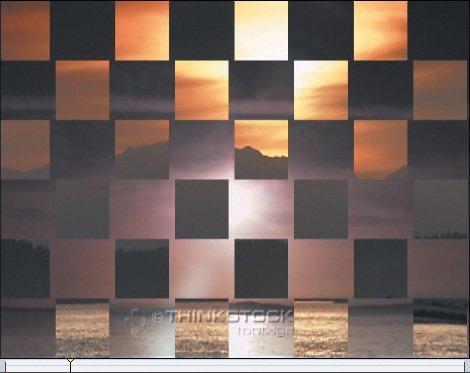 | | | 4. | Drag the Checker Wipe icon from the Wipe bin to the edit point between the first two clips, bird fly by and boat dusk, and play the transition.