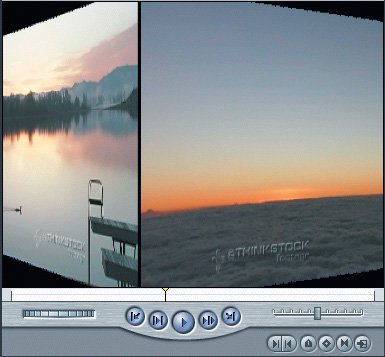 | 4. | Click the next edit point, between the distant sunset and glass lake clips, and this time choose Effects > Video Transitions > 3D Simulation > Cube Spin. Play this effect, or preview it by pressing Option-P.