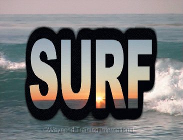 | 5. | Type the word SURF in the text box, and select Arial Black for the font and 148 for the font size. Press Tab to see the results.