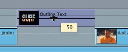 | | | 10. | Drag the opacity line for the new Surf Outline Text clip down to about 40%. Press Option-W to turn off the overlay lines and play the clip.