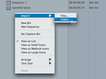 You can also import an entire folder of clips. This time, let's import using the shortcut menu in the Browser.