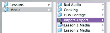 Note If iTunes opens, click the window and press Cmd-H to hide it for the moment. | 3. | Press Cmd-N to create another Finder window. In this window, single-click the FCE HD Book Files folder and navigate to the Media > Import-Export folder. Position this window so that you can also see the CD tracks in the other Finder window.