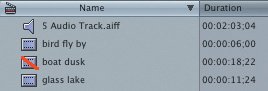 | Importing Audio from CDs It's easy to use material from a CD in your sequence, whether it's music, narration, or sound effects. You can simply import an audio track from a CD directly into your project and then edit it into your sequence. But don't forget that as soon as you eject a CD, you no longer have access to the audio file. It's a good idea to take an extra step and copy the track or tracks you want to use to a folder along with your other media files, or import the files using the Apple music program, iTunes, before importing the track into your Final Cut Express project. 1. | Press Cmd-H to temporarily hide the Final Cut Express interface.