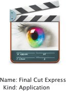 A large Final Cut Express HD icon appears in the next column, along with some information about the program size, version, and so on.