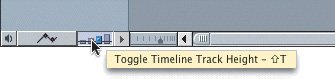 | Adjusting Track Height The vertical height of the Timeline tracks can be adjusted to suit your personal preferences as well as the project requirements. If you are working with a lot of tracks, you may want to make them all smaller to see more tracks at one time. The Track Height control is at the lower left of the Timeline. | | 1. | In the bottom of the Timeline, move your mouse pointer over any column in the Track Height control area.