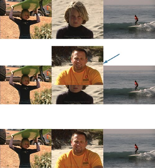 | Take a minute to view the edits you have put together in your sequence. Which approach to making Overwrite edits did you enjoy the most? They both get the same job done, so it really is a matter of personal preference. Another approach, dragging a clip directly to the Timeline, will be covered in the next lesson. Project Tasks 1. | Edit the following marked clips into the sequence by using the F10 shortcut key or dragging to the Canvas Edit Overlay: