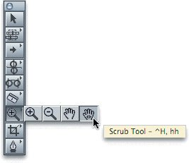 The Scrub tool has left and right (forward and backward) arrows on the hand icon.