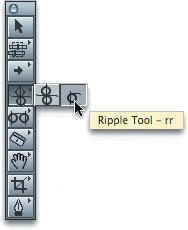 | 3. | In the Tool palette, click and hold the fourth tool. Slide over and stay on the single roller icon for a moment until the tool's name, Ripple, appears, and then let go. You can also press RR as the keyboard shortcut to select this tool.