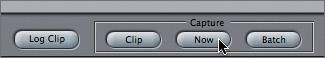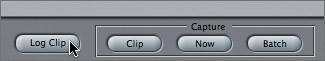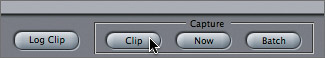| You can approach the capture process in different ways. In some situations, you may want to enter detailed information about a clip and then capture that clip before going on to the next one. In other situations, you may want to log information about all of your clips at one time, then capture them as a group. Other times, you may be working with footage that doesn't have timecode, and you won't be able to log any information. You can also choose to capture an entire tape and let Final Cut Pro automatically create the clips based on where the tape stopped and started. NOTE If you're capturing a project that originated on film, you may need to use Apple's Cinema Tools to keep track of the relationship between the keycode of the original film frames and the timecode of the video you are capturing. Refer to the Cinema Tools user's guide for more information. The lower portion of the Logging tab area has three capture buttons Clip, Now, and Batch and a Log Clip button. These buttons appear regardless of which tab is selected in the Log And Capture window. Each of the capture options converts footage from your tape source into computer media files. The Log Clip button builds a list to be captured later using Batch Capture. Although all the capture options create media clips, each goes about the process differently.  Capturing a Clip If you have set In and Out points on your source footage, you have identified a specific clip. The Capture Clip option will capture just the marked portion of your source material, along with any additional log information and markers. NOTE This option is not available for HDV capture. You must use the next option, Capture Now. 1. | Mark a new clip from your source footage, or use the clip you marked in previous exercise steps.