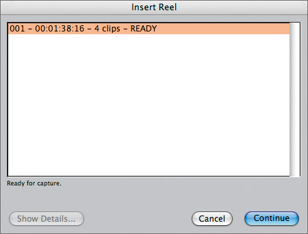 When all clips on that reel have been captured, the Insert Reel dialog opens again.