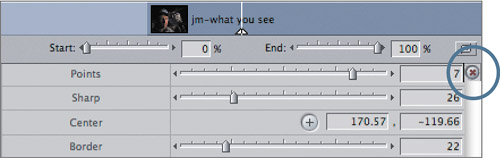 Under the transition graphic display, there are additional parameters that can be controlled or adjusted using a slider or numerical-entry box. Some parameters in other effects use pop-up menus. Most parameters are self-explanatory after you've changed the parameter values and looked at the effect in the Canvas.