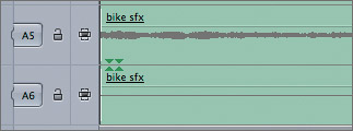 | 6. | To delete the empty track from the stereo bike sfx.aif clip, select the clip, and press Option-L to ungroup the stereo pair. Select the lower track, and press Delete.