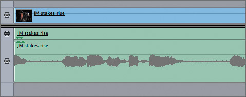 TIP If the audio waveform does not appear, make the track taller or zoom into the clip to see the waveform display. | 10. | Zoom into the head of the first clip, JM stakes rise.