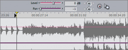 | 5. | Move the playhead to the frame before the last audio pop, and set an In point at this location as you did with the master CD track.
