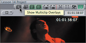 | 8. | In the Viewer button bar, click the Show Multiclip Overlays button to toggle off the overlays in this multiclip.