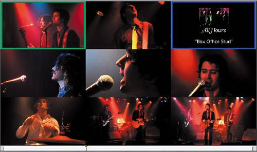 | 9. | In the Viewer, click the View pop-up and choose Multiclip 9-Up from the pop-up menu to see all the multiclip angles. Play this portion of the music video.