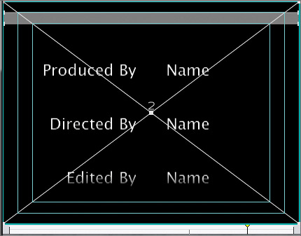 | 5. | When you see the Crop tool appear, drag up until the lower portion of the matte is in line with the upper title safe line. Drag down from the top of the matte to the outer bounding line, which identifies the action safe area. You should see a thin horizontal bar at the top of the image area.