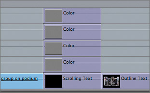 | 12. | Follow the same process to add colors to the other three Color clips. Use a different color for each bar. Choose your colors from the graphic at the head of the sequence.