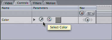 | 10. | Move the playhead to the start of the sequence so the Logo FLAT.jpg clip appears in the Canvas. Double-click the V2 Color clip to open it in the Viewer, and in the Controls tab click the Select Color tool.