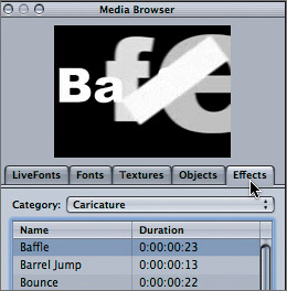 | 2. | In the Media Browser, click the LiveFonts tab, if it's not already selected.