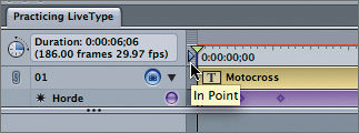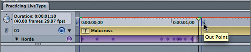 | 8. | Extend the Out point to the end of the Motocross title. To play the full animation, press the spacebar or click the Play button in the Canvas.