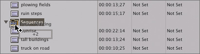 As you drag these sequences together, the name of only the sequence you clicked shows, as well as the number of other items you're dragging.