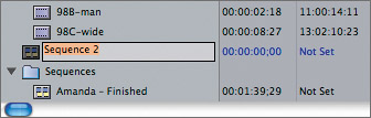 | 2. | Ctrl-click in the empty gray area of the Browser under the Name column. Choose New Sequence from the shortcut menu.