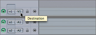 Although the order of the destination tracks is fixed, you can move and connect source controls, or patch them, to any destination. This determines the placement in the Timeline of the audio and video tracks of the source clip.