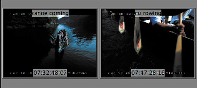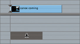 | 4. | Move the mouse pointer to the tail of the canoe coming clip. Note that the pointer changes to a vertical resize arrow. Click once to select the Out point of this clip.