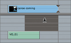 | 10. | Drag the VO_01 clip until its In point aligns, or snaps, to the beginning of the canoe coming clip.
