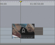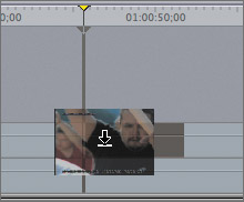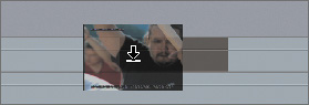 NOTE If you accidentally released the mouse, press Cmd-Z to undo that action. Then repeat step 3. | 4. | With clip thumbnail in hand, focus on the tip of your pointer, and drag it up and down over the thin gray line in the V1 track just as you did before.