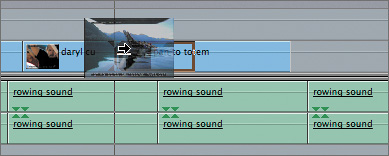 | 3. | Drag the clip from the Viewer to the Timeline as an Overwrite edit, and snap it to the end of the daryl cu clip. Remember, it doesn't matter where the playhead is located for this edit.