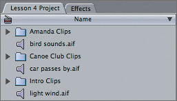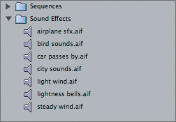 | 8. | Click the disclosure triangle to display the contents of the Sound Effects bin.