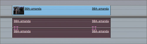 This representative clip has linked audio and video. The 98A-amanda clip was captured with sync sound.